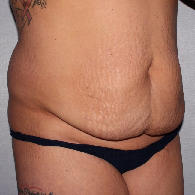 This 36-year-old mother of 1 child had significant weight gain during pregnancy and was unable to lose much postpartum. Despite working out in the gym and dietary restraints, she was still overweight. Her body mass index was 33, which is considered obese. She had very specific goals, and that was to remove redundant skin and fat from her lower abdominal pannus as well as improve her flanks. She did feel that she would be able to exercise better with the excess tissue removed.